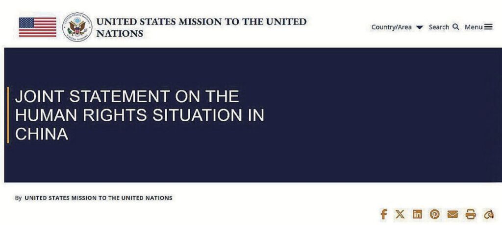 2025년 11월 21일, 미국, 영국, 호주 등 15개 유엔 회원국이 ‘중국 인권 상황에 관한 연합성명(Joint Statement on the Human Rights Situation in China)’을 발표해 중공(중국공산당)이 위구르인과 기타 무슬림 소수민족, 기독교인, 티베트인, 파룬궁수련자 등 집단을 겨냥해 박해하는 것을 규탄했다.